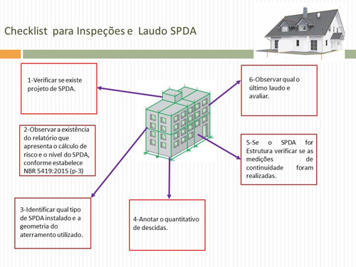 O objetivo deste de um Laudo é fornecer informações referentes as atuais condições da instalação do SPDA - Sistema de Proteção contra Descargas Atmosféricas (Pára-Raios), para efeito de atendimento as prescrições da NBR 5419/2015 da ABNT - Associação Brasileira de Normas Técnicas. Considerações Importantes quanto ao funcionamento de um SPDA: